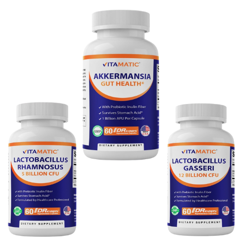 【シンバイオティック3本セット】アッカーマンシア・ガセリ菌・ラムノサス菌+イヌリン配合|各60DRカプセル(2か月分)|Vitamatic社製サプリメント