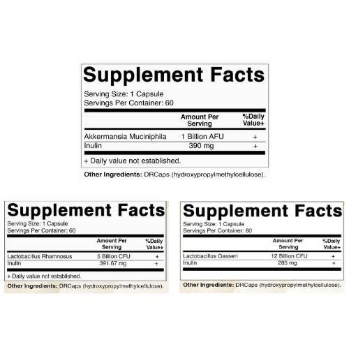 腸内フローラのバランスを整えることを目的に、アッカーマンシア菌体成分(10億AFU)、ガセリ菌(120億CFU)、**ラムノサス菌(50億CFU)**の3種をセットに。さらに、**全製品にプレバイオティクス成分「イヌリン」**を配合し、菌の働きをしっかりサポートします。