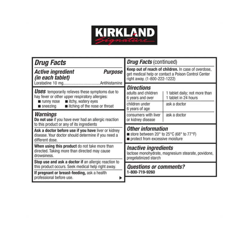 【365錠】アレルクリアー ALLERCLEAR カークランド ロラタジン10mg配合