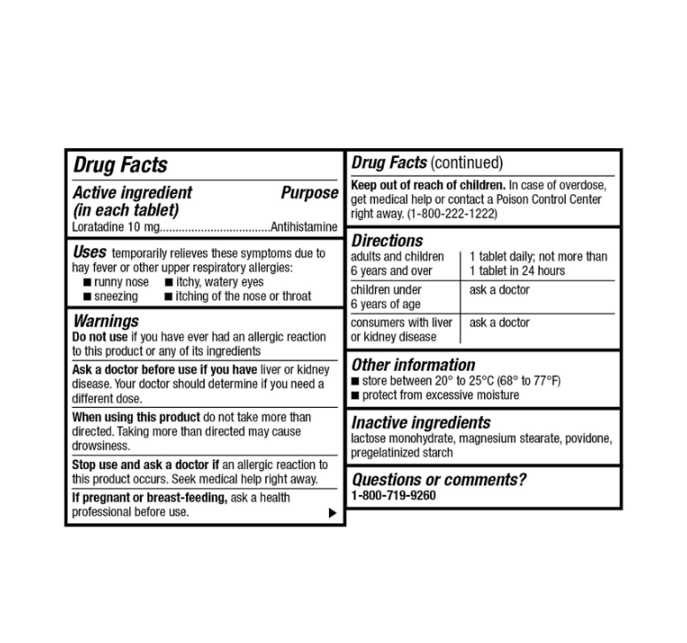 成分 有効成分(1 錠あたり) ロラタジン10mg・・・抗ヒスタミン剤 ご使用上の注意をよく読んでからご使用ください。 (アメリカにおける注意書きとなります)