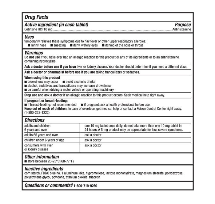 成分 有効成分(1 錠あたり) 塩酸セチリジン 10mg....抗ヒスタミン剤 ご使用上の注意をよく読んでからご使用ください。 (アメリカにおける注意書きとなります)