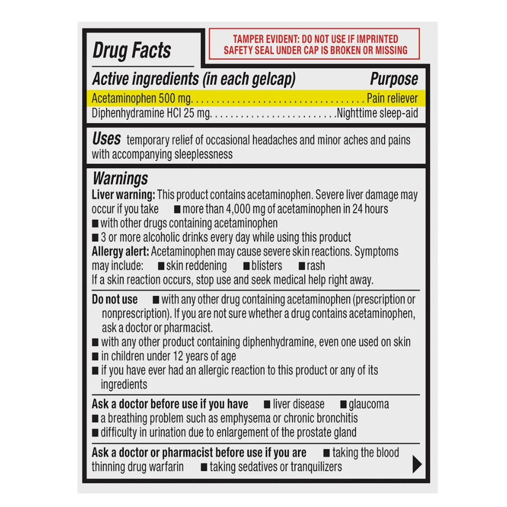 ジェネリック・タイレノールPM アセトアミノフェン+ジフェンヒドラミン 375錠